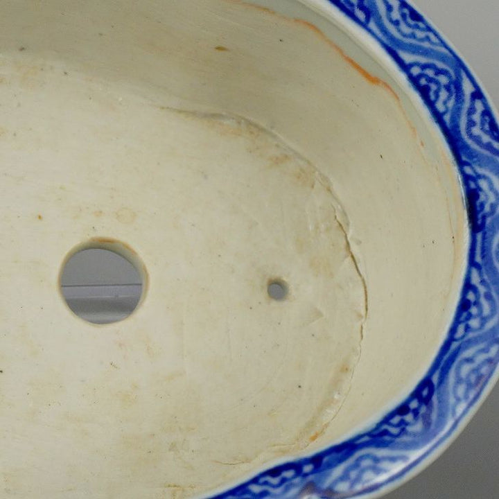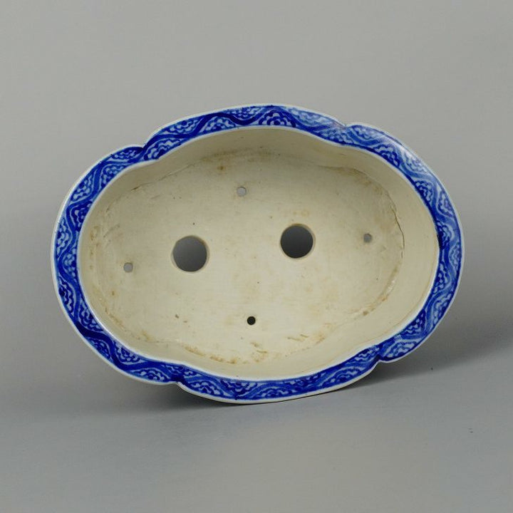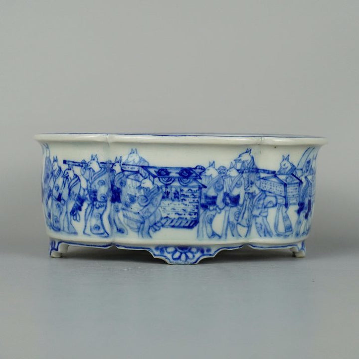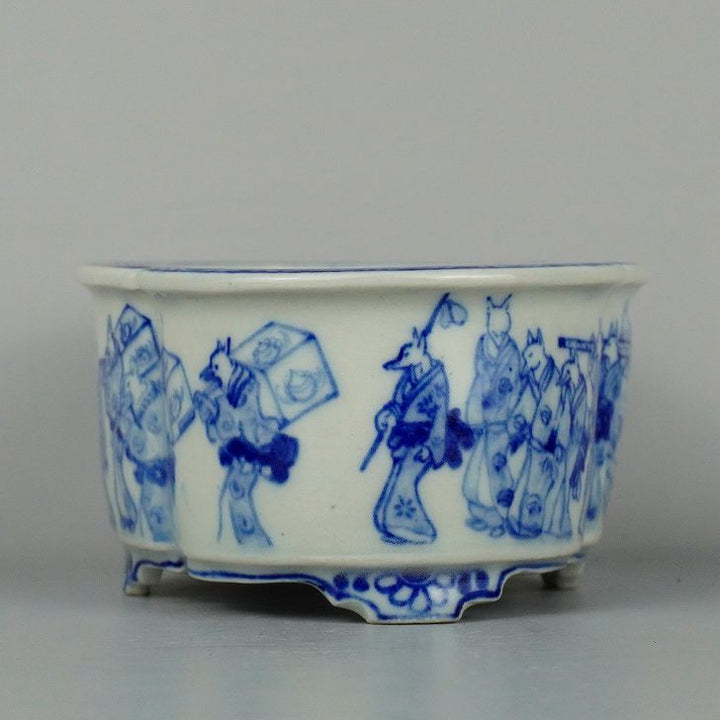 盆栽鉢 唐峰造 染付 木瓜鉢 狐の嫁入り図 中古鉢
