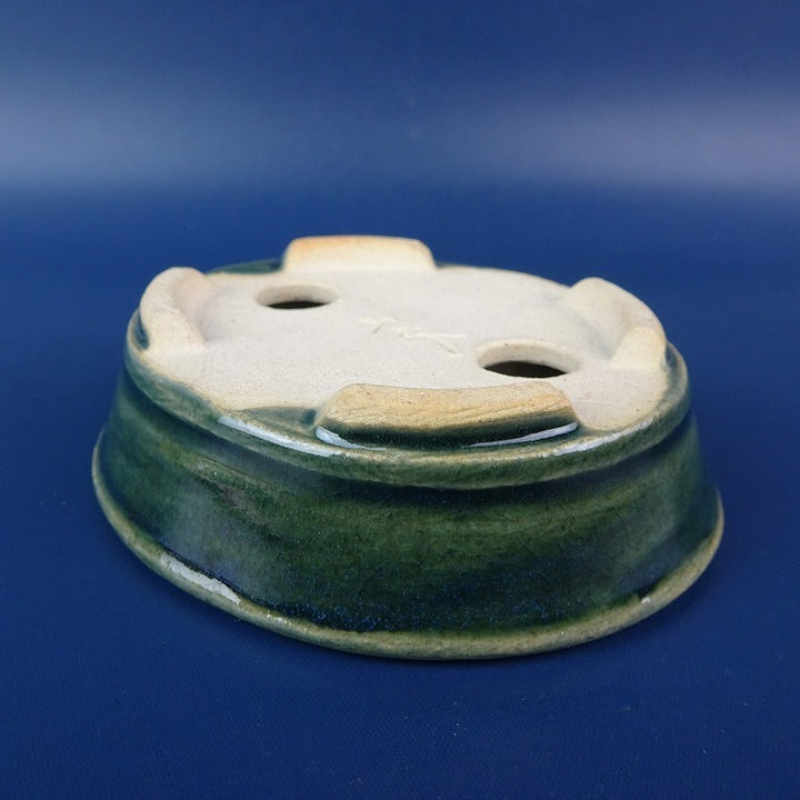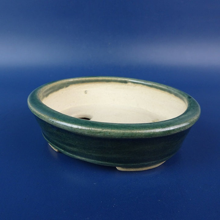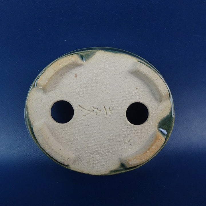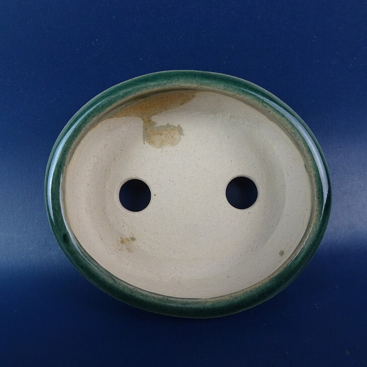 盆栽鉢 土交 小鉢 長辺 約 9.1cm 楕円鉢 外縁 下帯 釉薬 中国鉢 新品 e1198414214