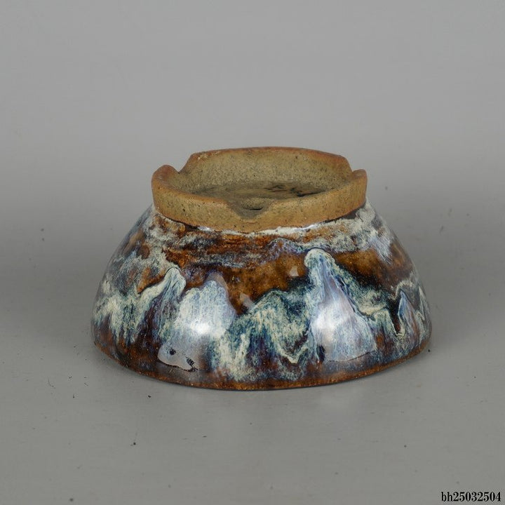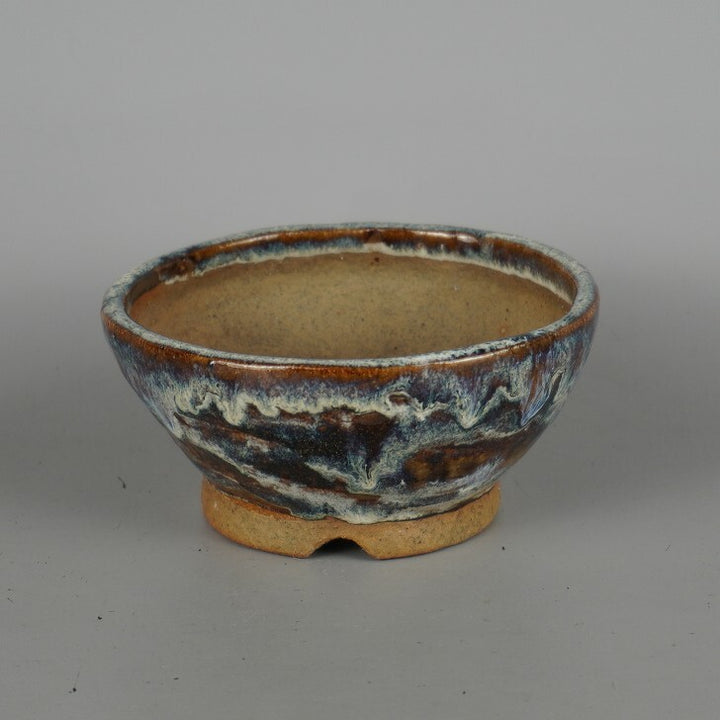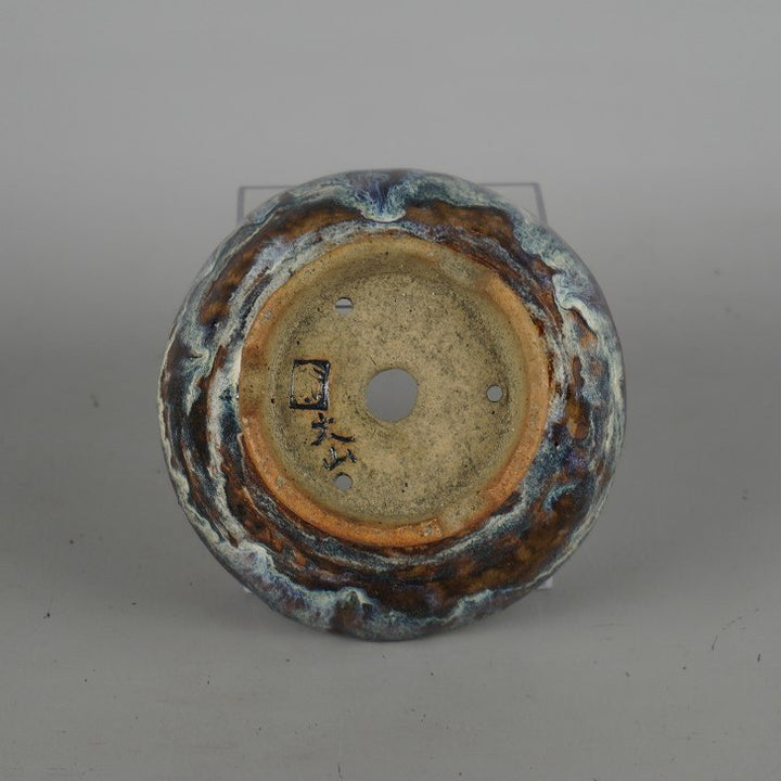 盆栽鉢 大山 大久保 欣三郎 小型 長辺 約 11.5cm 丸鉢 釉薬 新品 x1198417253