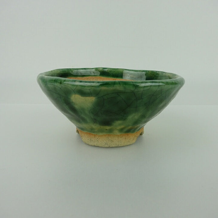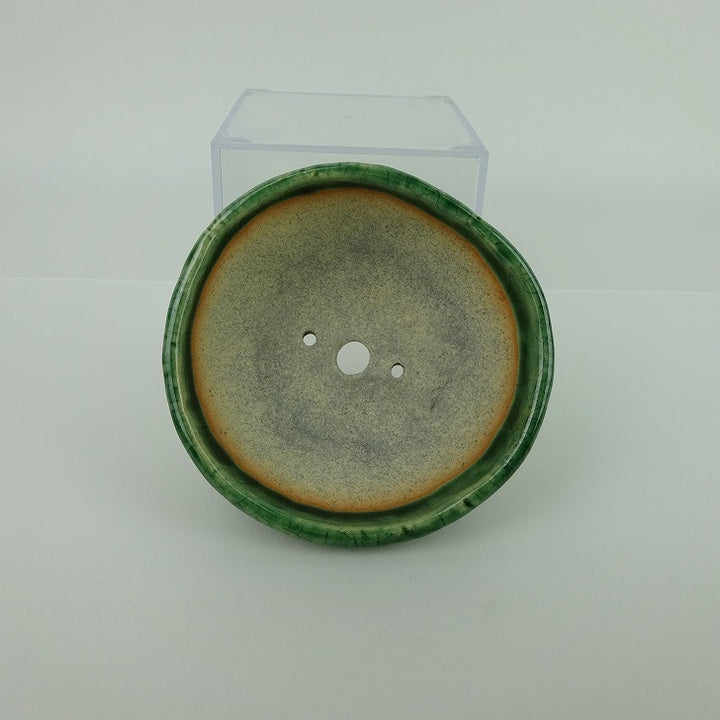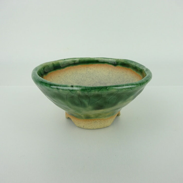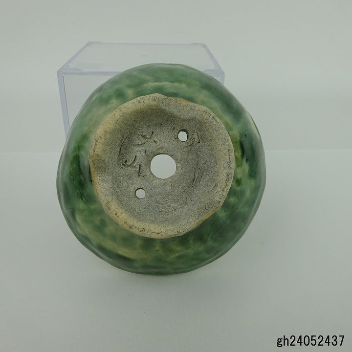 盆栽鉢 大山 大久保 欣三郎 小鉢 長辺 約9.5cm 丸鉢 釉薬 観賞用 新品 m1198408026