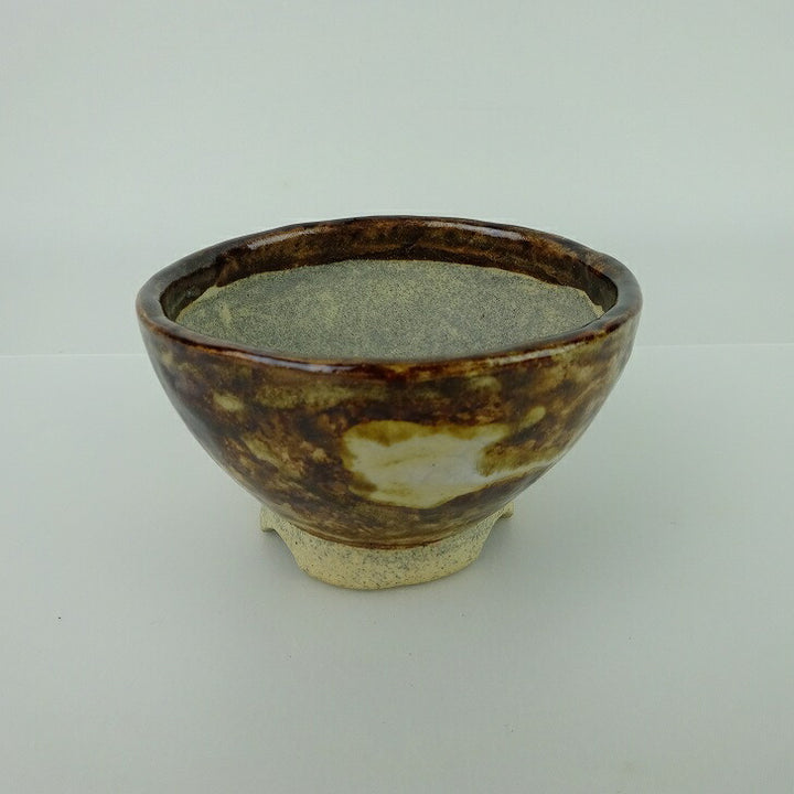 盆栽鉢 大山 大久保 欣三郎 小鉢 長辺 約9.8cm 丸鉢 釉薬 観賞用 新品 u1198422847