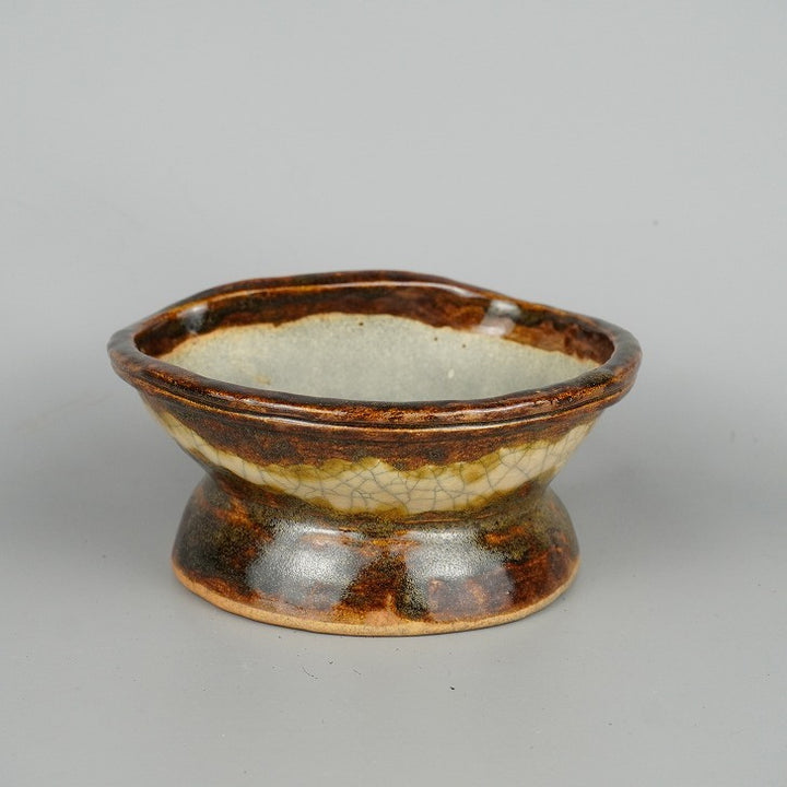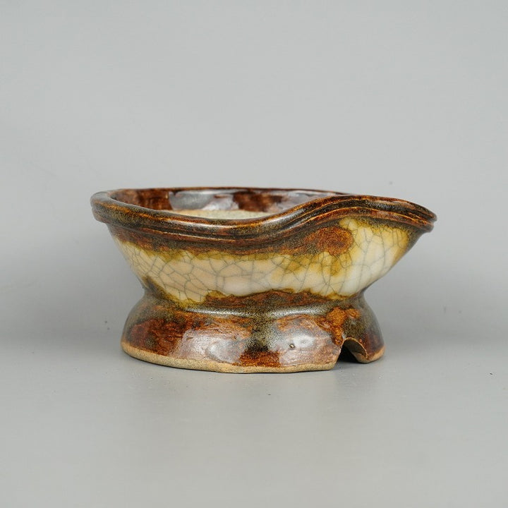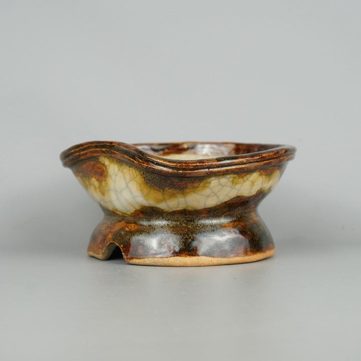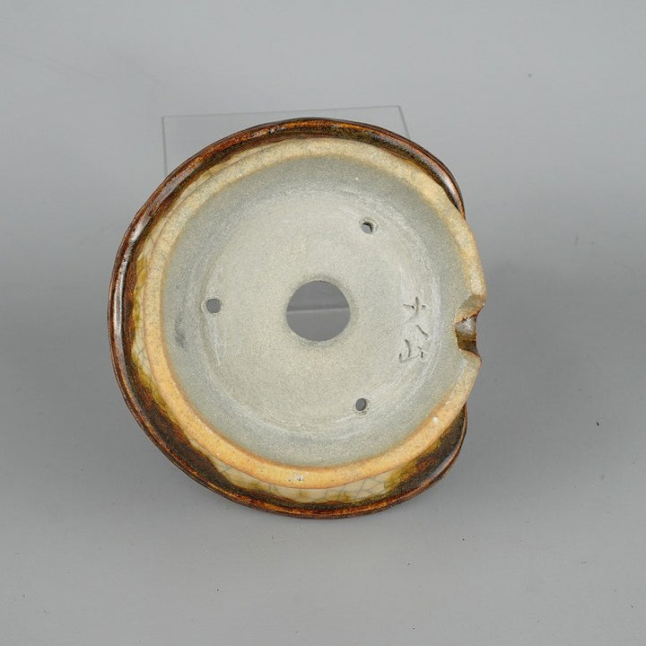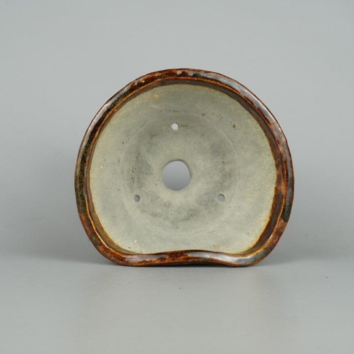 盆栽鉢 大山 小型 長辺 約13.3cm 変形 丸鉢 釉薬 新品 d1198425760
