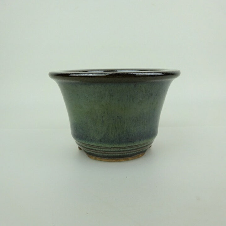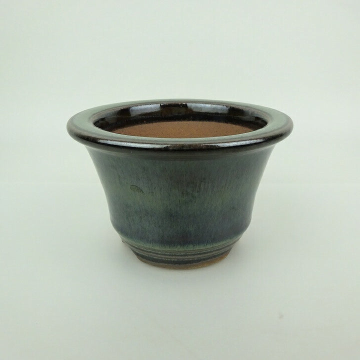 盆栽鉢 小石原焼 小型 長辺 約11.6cm 丸鉢 外縁 下帯 釉薬 観賞用 新品 1198408760