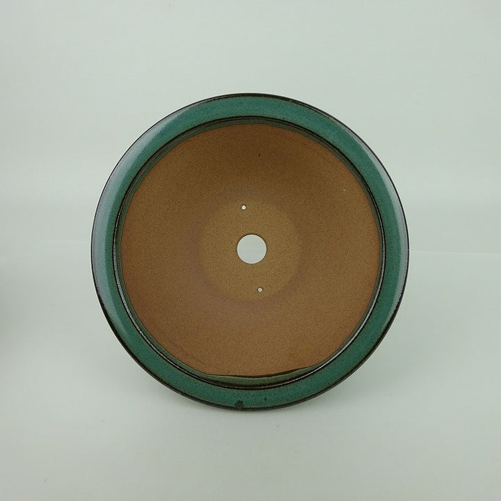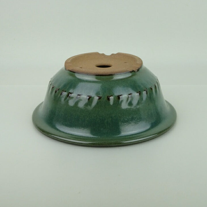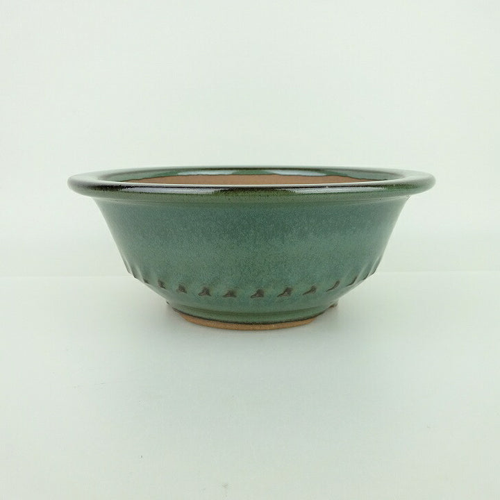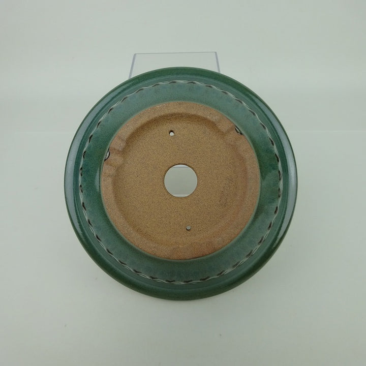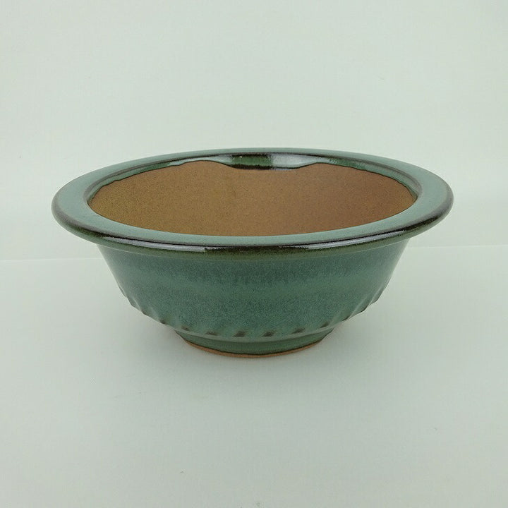 盆栽鉢 小石原焼 小型 長辺 約18.3cm 丸鉢 外縁 緑釉 釉薬 観賞用 新品 1198409558