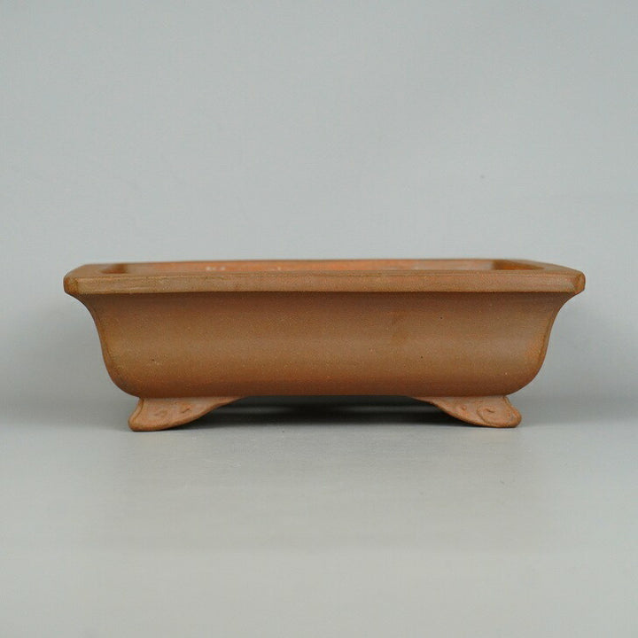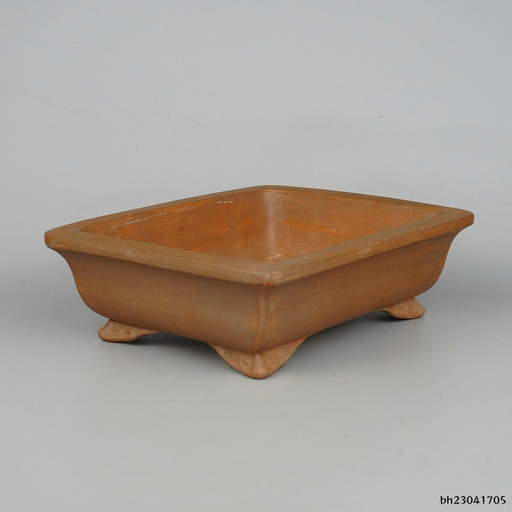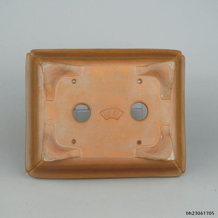 盆栽鉢 常滑 樹晃 鴻陽陶園 小型 長辺 約18.5cm 長方鉢 隅入 雲足 泥物 新品 m1198406835