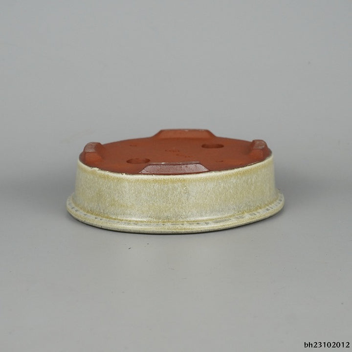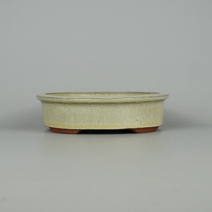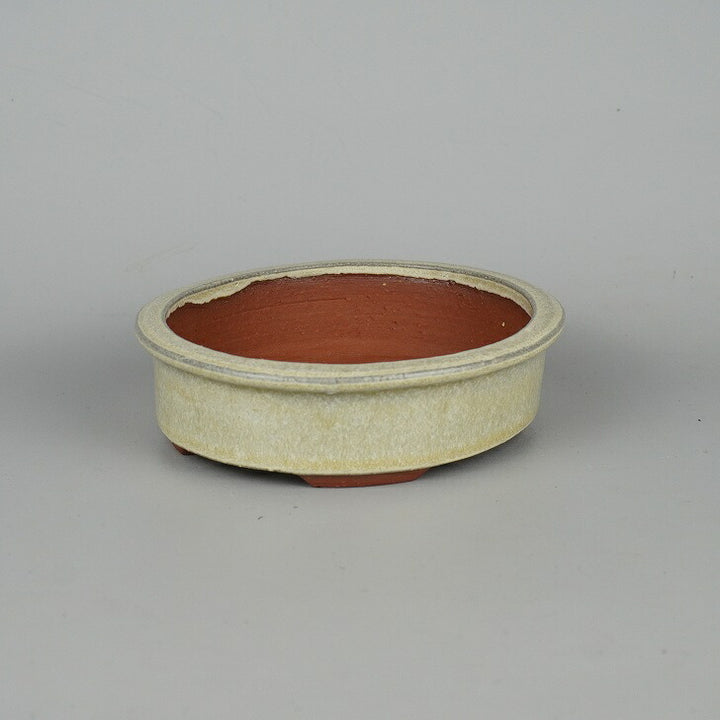 盆栽鉢 常滑 燿山窯 英明 小型 長辺 約14.8cm 楕円鉢 外縁 小判 白釉 釉薬 新品 数量物 m1198409619