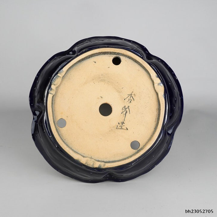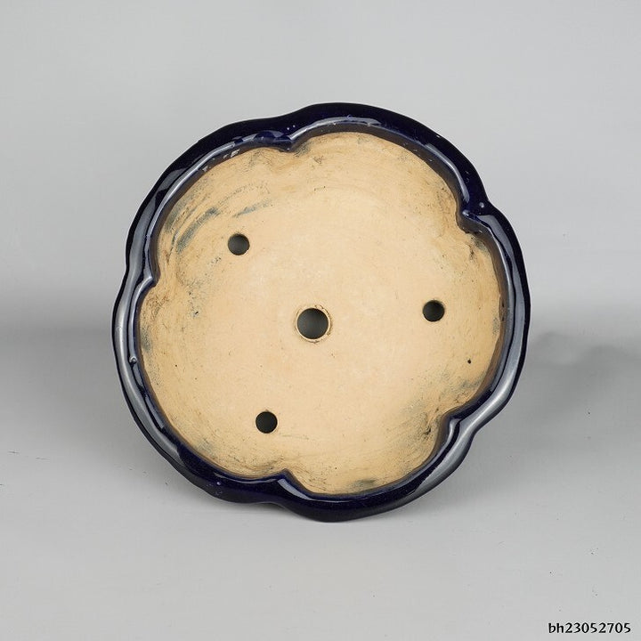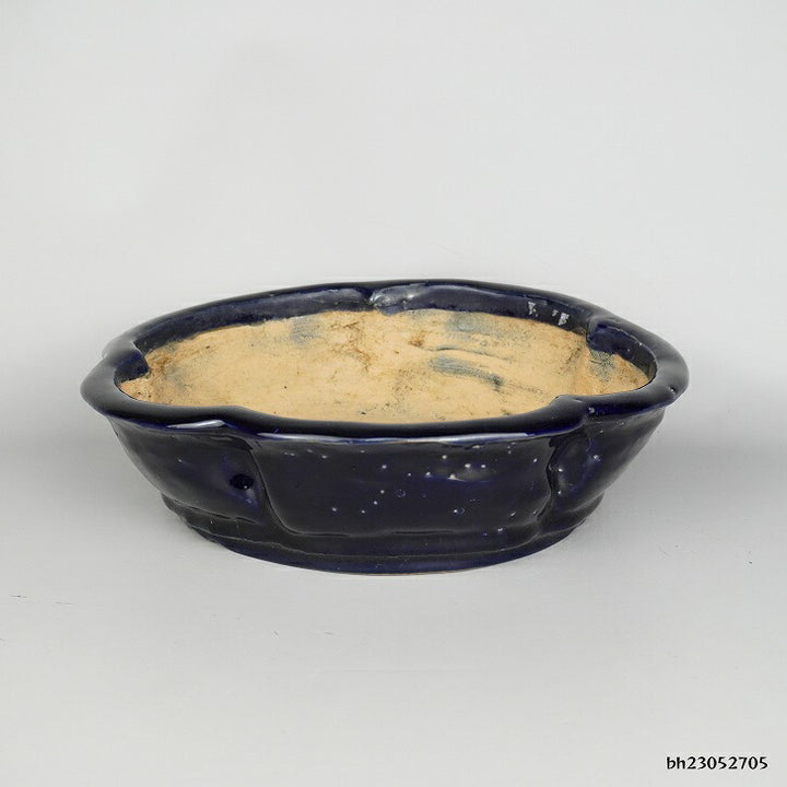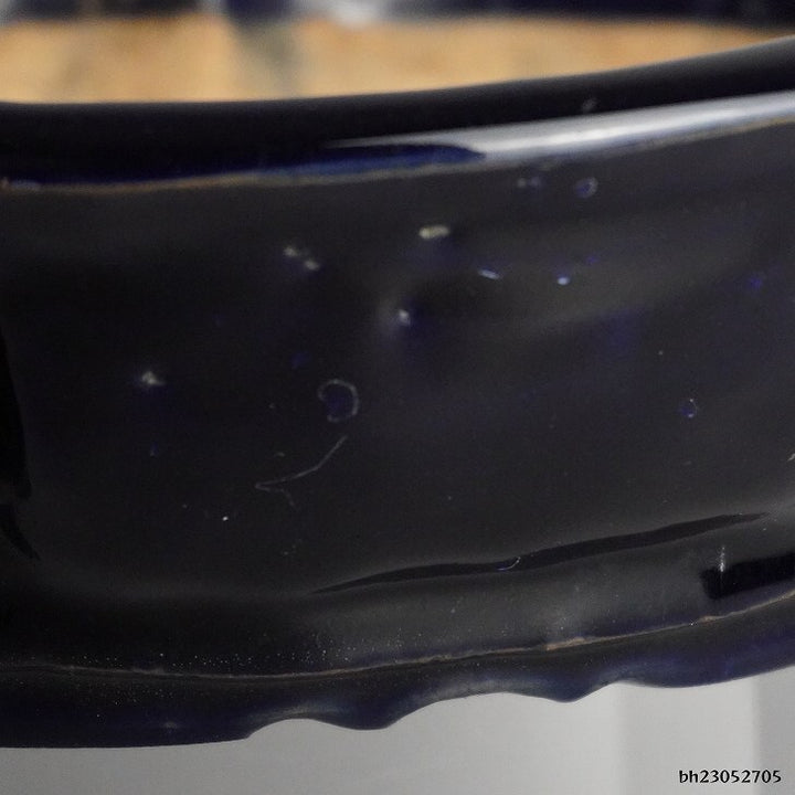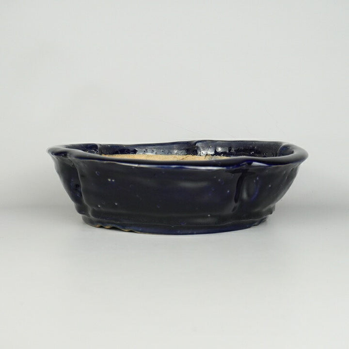 盆栽鉢 常滑 秀峰造 中型 長辺 約25cm 梅花鉢 外縁 瑠璃 釉薬 新品 l1198408287