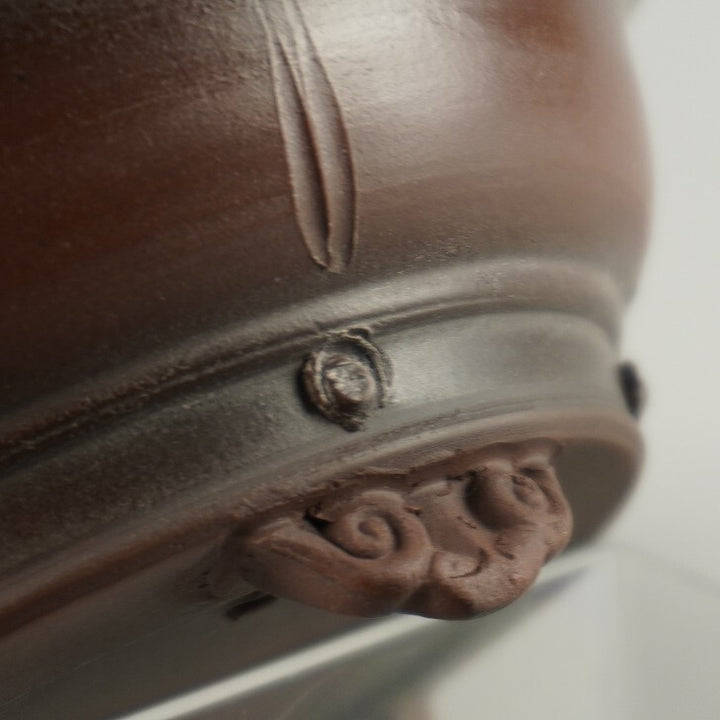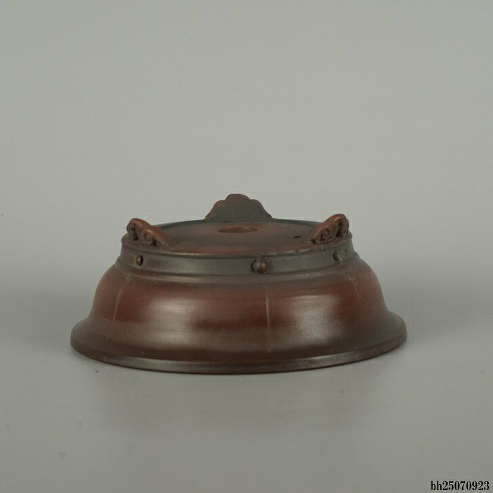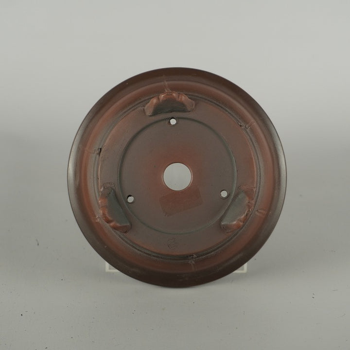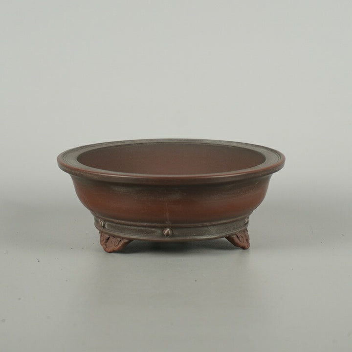 盆栽鉢 常滑 美芸 小型 長辺 約 13.8cm 丸鉢 雲足 下帯 泥物 現品 美芸 朱泥ボカシの小鉢が有名で泥物を専門としている。作品はシンプルな形や模様のものが多く、小鉢から30cm前後の大きな鉢も制作する。形も正方形、長角、六角、八角、丸など多彩である。 釘彫り、透彫り、象眼などの装飾を加えた細工物も手掛ける。...