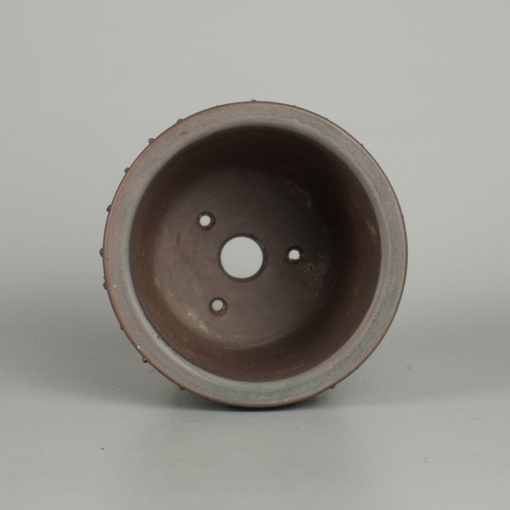 盆栽鉢 常滑 美芸 小鉢 長辺 約 9cm 丸鉢 雲足 窓入 鋲打 泥物 鑑賞 観賞用 o1203469129