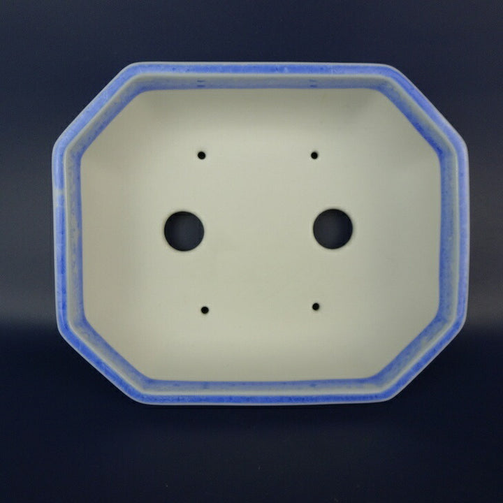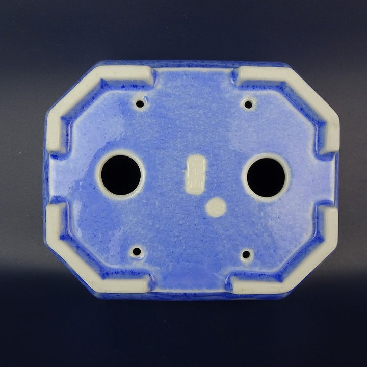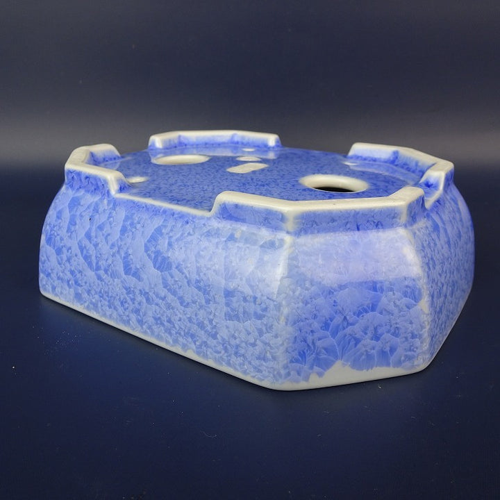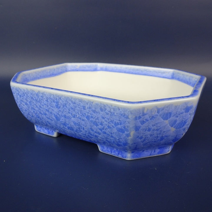 盆栽鉢 平安泉山 小型 長辺 約16.1cm 長方鉢 隅切 青花結晶 釉薬 新品 h1198426017