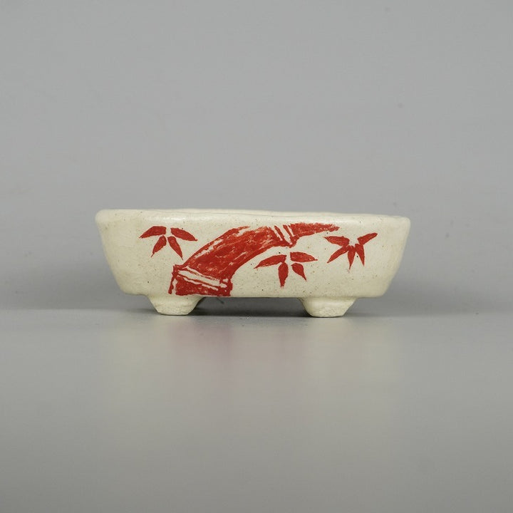 盆栽鉢 文山 越前文山 小型 長辺 約11.5cm 楕円鉢 赤絵 竹 葡萄 観賞用 現品 新品 越前文山 1973年に鯖江園芸を開園する。 地元に伝わる越前焼に則って独自の作風を確立し、手びねりによる焼締の他、辰砂などの釉薬や象嵌を施したものがある。...