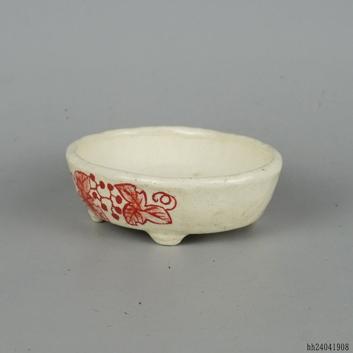 盆栽鉢 文山 越前文山 小型 長辺 約 11.5cm 楕円鉢 赤絵 竹 葡萄 観賞用 新品 q1198411340