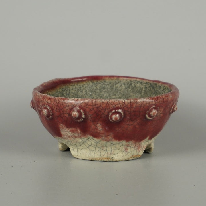 盆栽鉢 文山 越前文山 小型 長辺 約 11.5cm 鯖江園芸 丸鉢 鋲打 釉薬 鑑賞 観賞用 現品 文山・越前文山 越前文山 1973年に鯖江園芸を開園する。 地元に伝わる越前焼に則って独自の作風を確立し、手びねりによる焼締の他、辰砂などの釉薬や象嵌を施したものがある。...