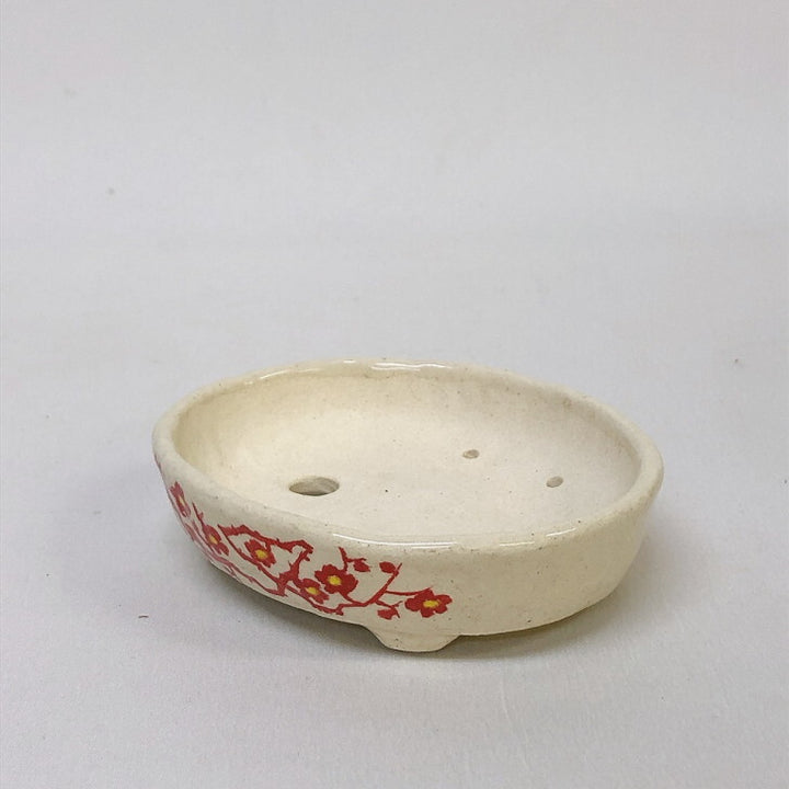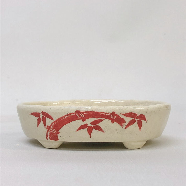 盆栽鉢 文山 越前文山 小型 長辺 約 13.3cm 楕円鉢 赤絵 竹 花 観賞用 新品 r1198411203