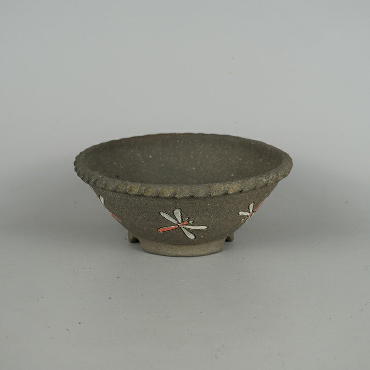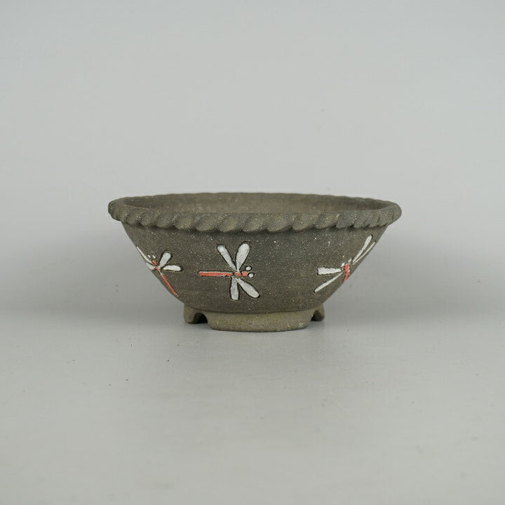 盆栽鉢 文山 越前文山 小型 長辺 約 16.5cm 鯖江園芸 丸鉢 色絵 蜻蛉 とんぼ トンボ 観賞用 新品 e1198407698