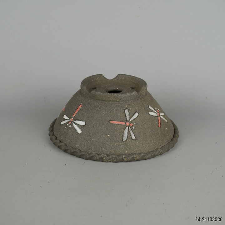 盆栽鉢 文山 越前文山 小型 長辺 約 16.5cm 鯖江園芸 丸鉢 色絵 蜻蛉 とんぼ トンボ 観賞用 現品 新品 品名文山 越前文山...