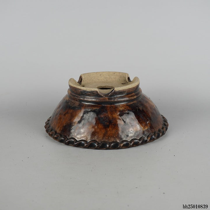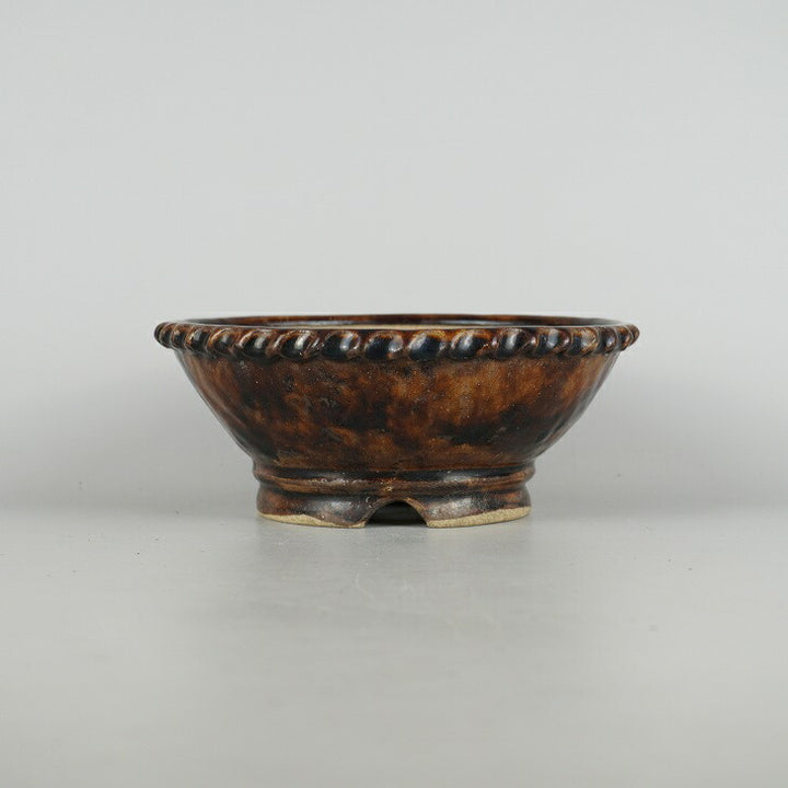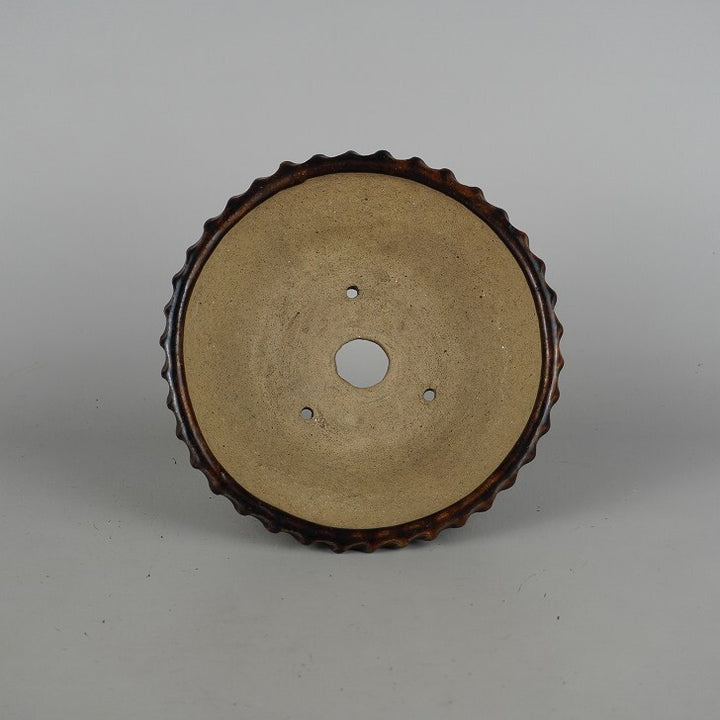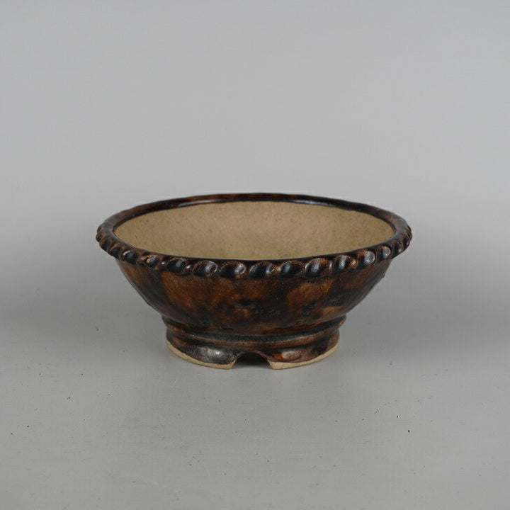 盆栽鉢 文山 越前文山 小型 長辺 約 18.8cm 鯖江園芸 丸鉢 縄縁 釉薬 観賞用 c1198408483