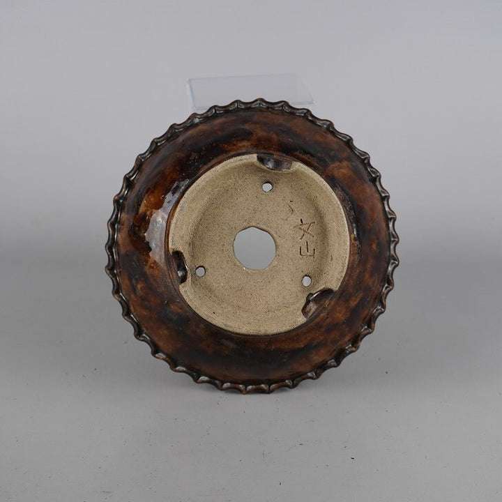 盆栽鉢 文山 越前文山 小型 長辺 約 18.8cm 鯖江園芸 丸鉢 縄縁 釉薬 観賞用 現品 文山・越前文山 越前文山 1973年に鯖江園芸を開園する。 地元に伝わる越前焼に則って独自の作風を確立し、手びねりによる焼締の他、辰砂などの釉薬や象嵌を施したものがある。...