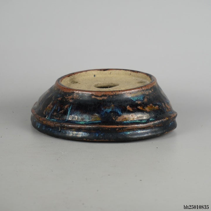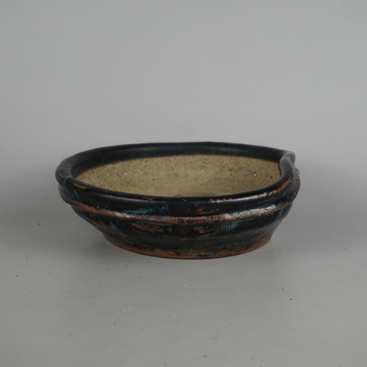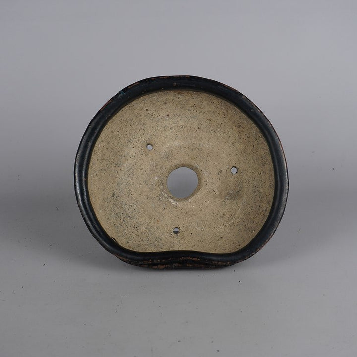 盆栽鉢 文山 越前文山 小型 長辺 約 19.5cm 鯖江園芸 変形 丸鉢 縁付 釉薬 r1198409563