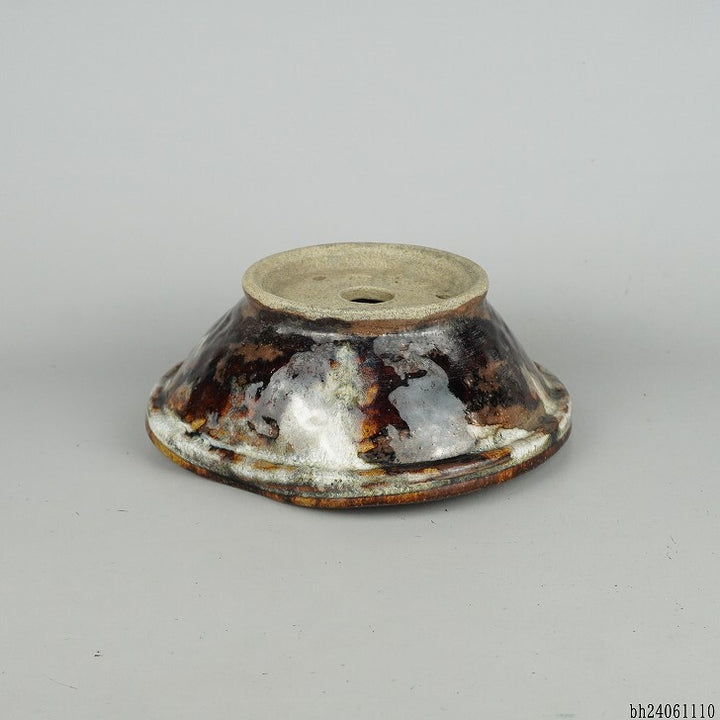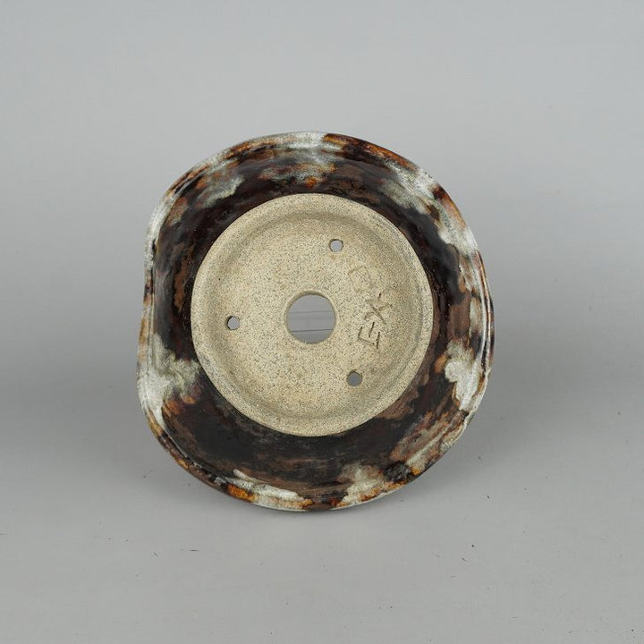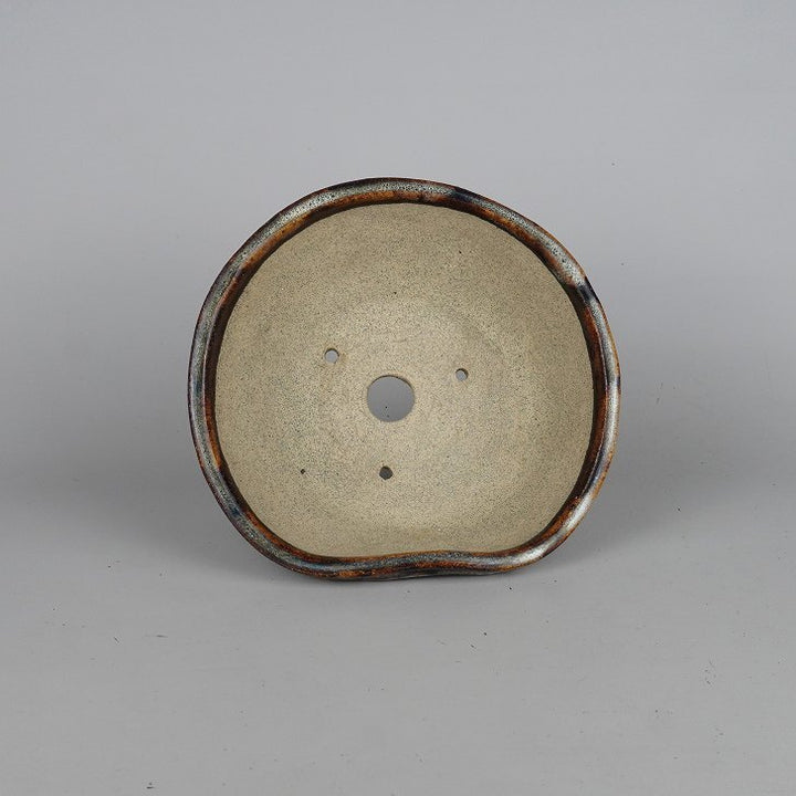 盆栽鉢 文山 越前文山 小型 長辺 約19.5cm 変形 丸鉢 釉薬 新品 w1198415250