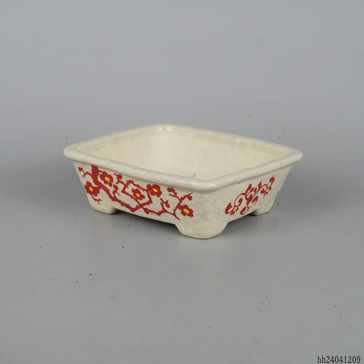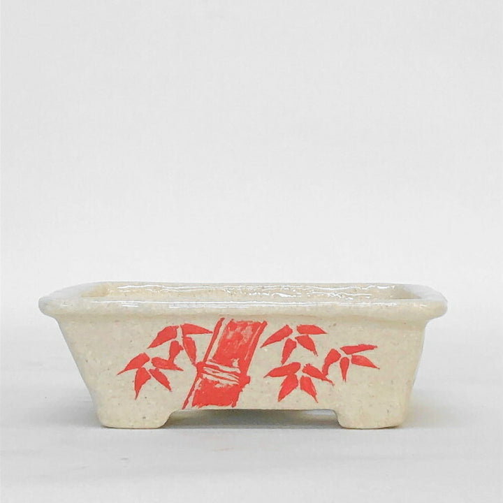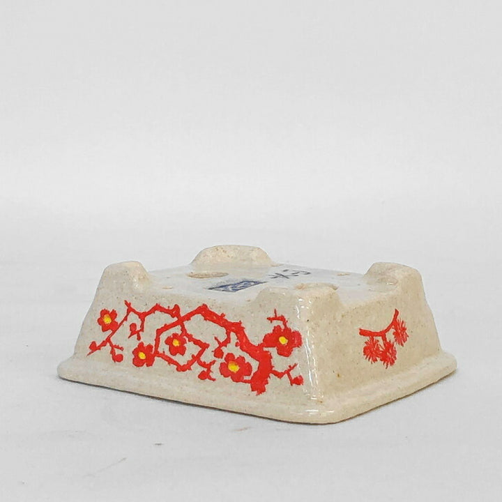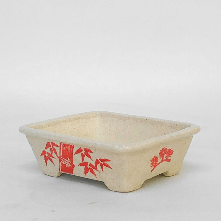 盆栽鉢 文山 越前文山 小型 長辺 12cm 長方鉢 赤絵 松 竹 梅 花 観賞用 新品 b1198419975