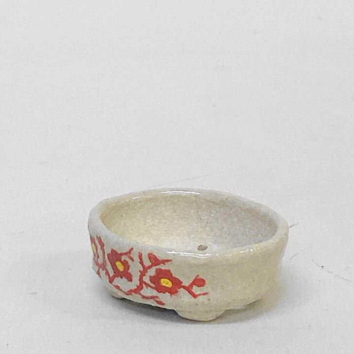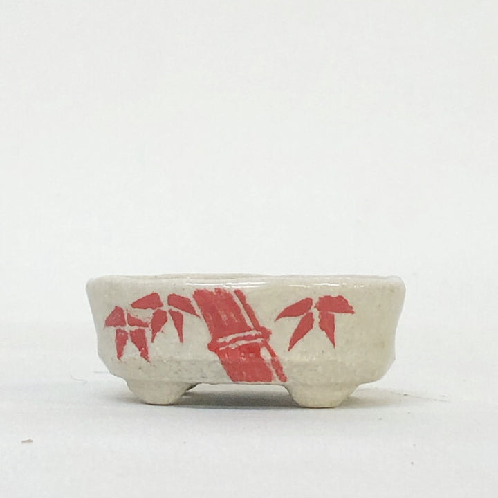 盆栽鉢 文山 越前文山 小鉢 長辺 約 6.2cm 楕円鉢 赤絵 竹 花 観賞用 新品 w1198413710