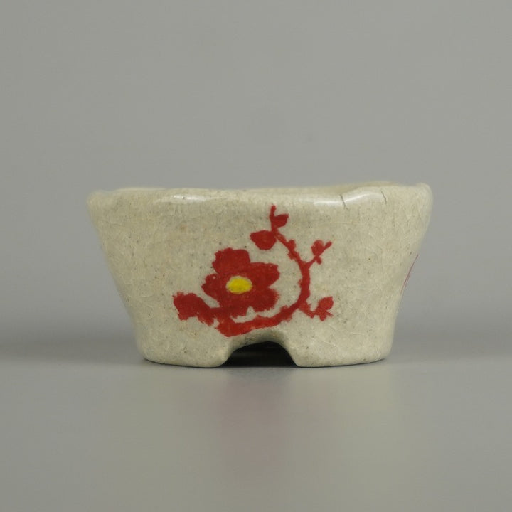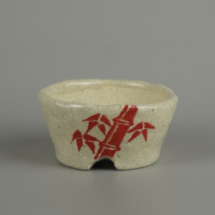 盆栽鉢 文山 越前文山 小鉢 長辺 約 6.3cm 丸鉢 赤絵 竹 笹 花 はな ハナ 鑑賞 観賞用 新品 q1208183150