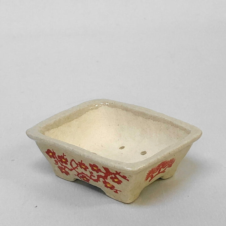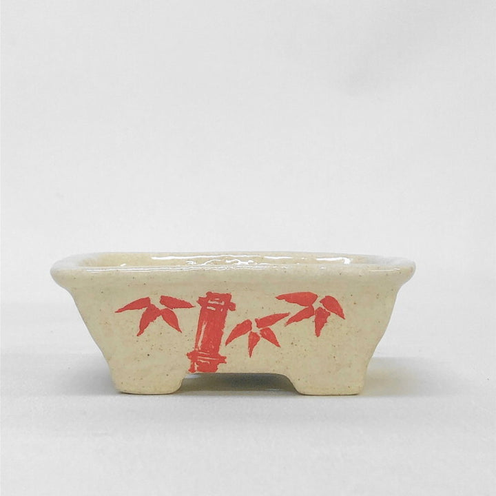 盆栽鉢 文山 越前文山 小鉢 長辺 約 9.8cm 長方鉢 赤絵 竹 花 観賞用 新品 q1198418105