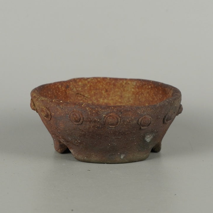 盆栽鉢 文山 越前文山 小鉢 長辺 約 9cm 鯖江園芸 丸鉢 鋲打 泥物 現品 文山・越前文山 越前文山 1973年に鯖江園芸を開園する。 地元に伝わる越前焼に則って独自の作風を確立し、手びねりによる焼締の他、辰砂などの釉薬や象嵌を施したものがある。...