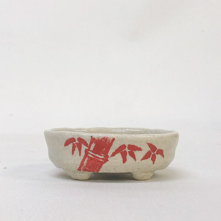 盆栽鉢 文山 越前文山 小鉢 長辺 約7.8cm 楕円鉢 赤絵 竹 花 観賞用 新品 e1198415605