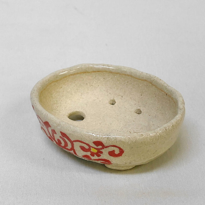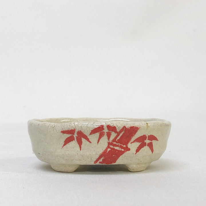 盆栽鉢 文山 越前文山 小鉢 長辺 約8.2cm 楕円鉢 赤絵 竹 花 観賞用 新品 1198400098