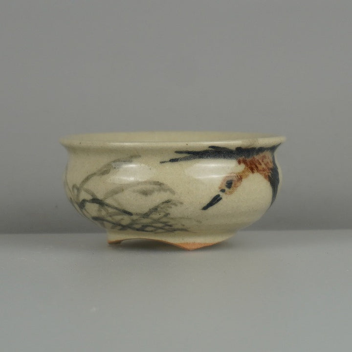 盆栽鉢 是好 矩 小鉢 長辺 約 6.5cm 丸鉢 色絵 鳥 とり トリ 植物 鑑賞 観賞用 現品 新品 品名是好 矩...