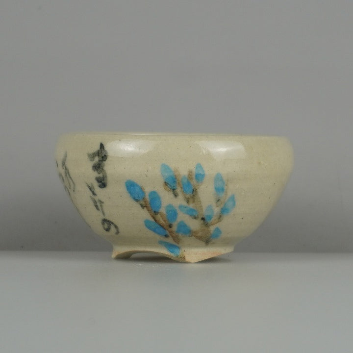 盆栽鉢 是好 矩 小鉢 長辺 約 7.5cm 丸鉢 色絵 植物 詩 鑑賞 観賞用 現品 新品 品名是好 矩...