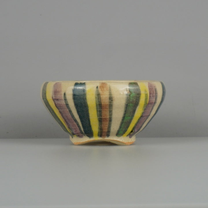 盆栽鉢 是好 矩 小鉢 長辺 約 7.8cm 丸鉢 色絵 縦縞 縞 模様 鑑賞 観賞用 新品 g1200658377