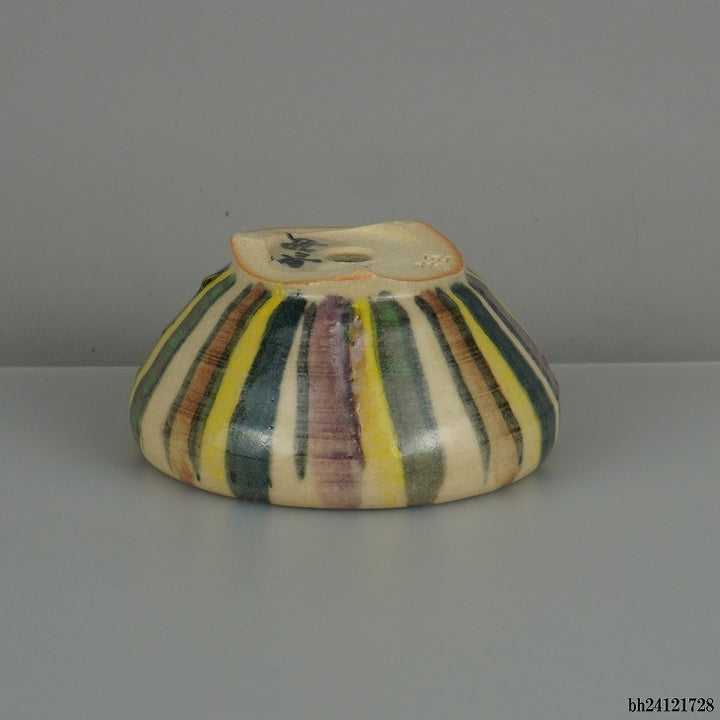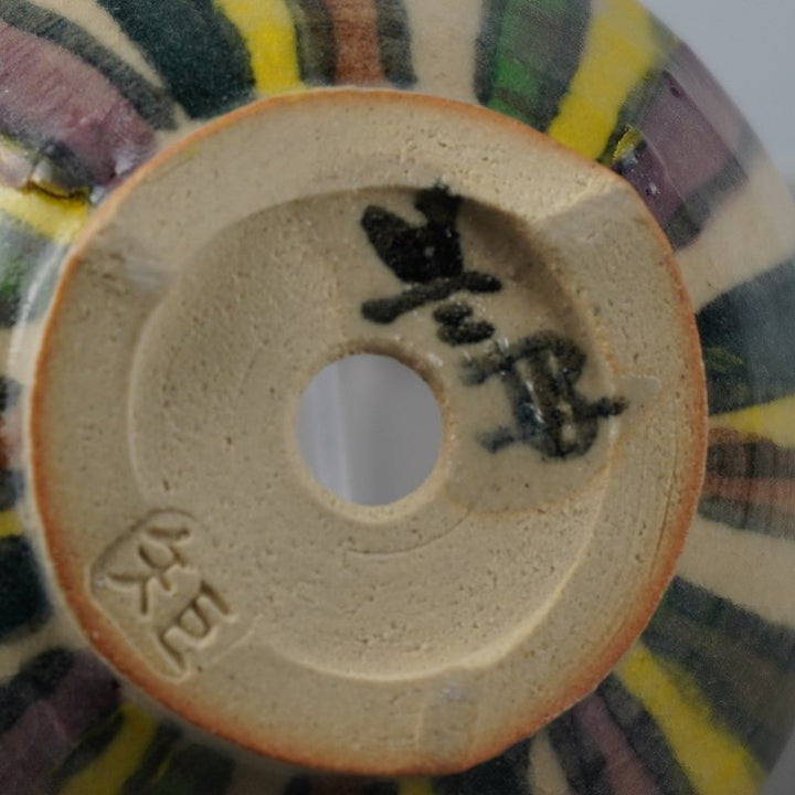 盆栽鉢 是好 矩 小鉢 長辺 約 7.8cm 丸鉢 色絵 縦縞 縞 模様 鑑賞 観賞用 現品 新品 品名是好 矩...
