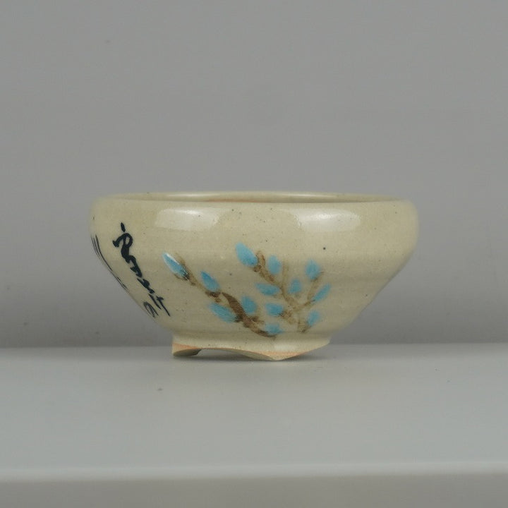 盆栽鉢 是好 矩 小鉢 長辺 約 8cm 丸鉢 色絵 猫柳 植物 詩 観賞用 新品 d1198425662