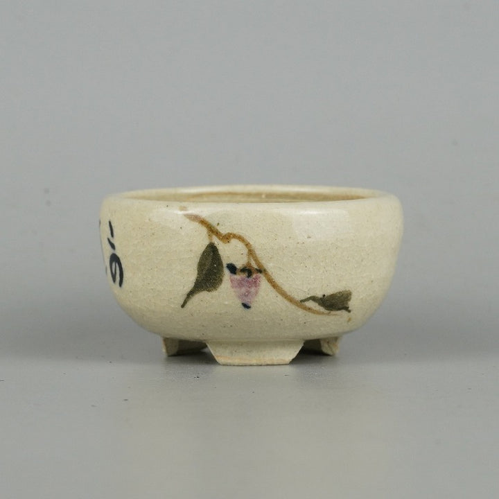 盆栽鉢 是好 矩 小鉢 長辺 7.7cm 丸鉢 色絵 柿 詩 かき 観賞用 現品 新品 品名是好 矩...