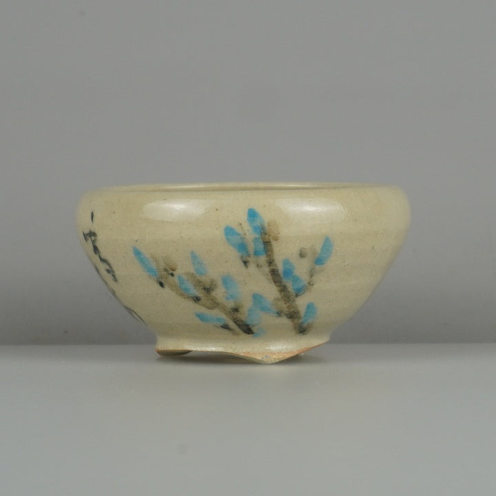 盆栽鉢 是好 矩 小鉢 長辺 7.7cm 丸鉢 色絵 花 植物 詩 観賞用 現品 新品 品名是好 矩...