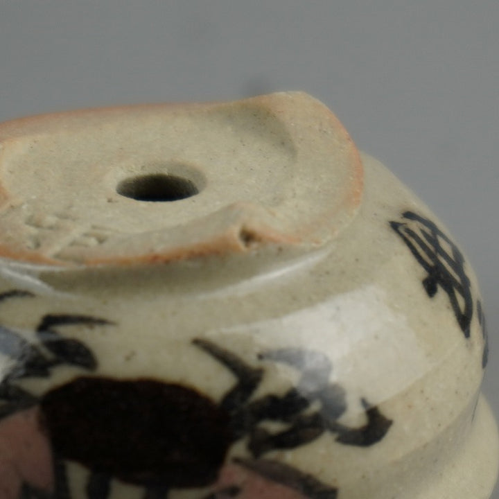 盆栽鉢 是好 矩 豆鉢 長辺 約4.3cm 丸鉢 色絵 蟹 かに カニ ミニ鉢 観賞用 現品 新品 品名是好 矩...