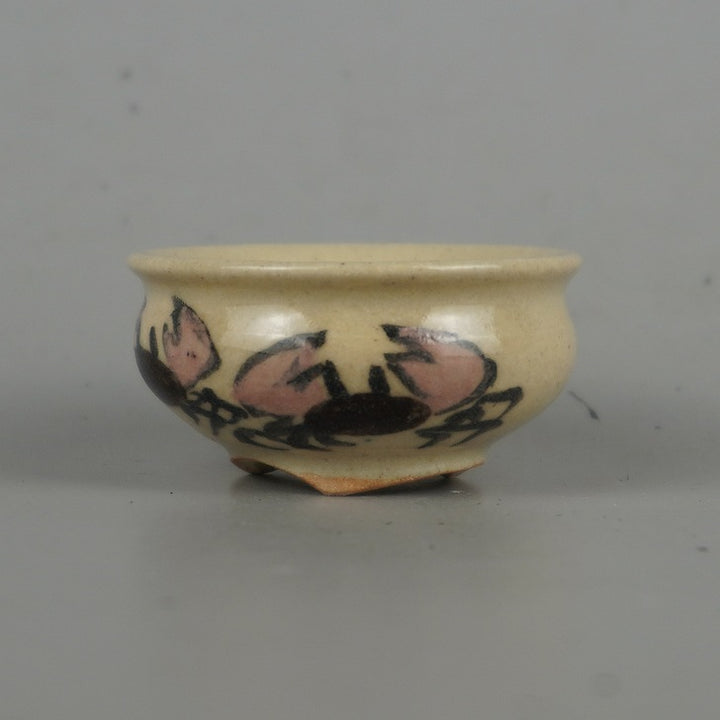 盆栽鉢 是好 矩 豆鉢 長辺 4.4cm 丸鉢 色絵 蟹 かに カニ ミニ鉢 観賞用 新品 v1198441559
