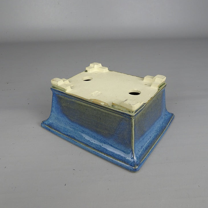 盆栽鉢 桂雲 福田桂雲 小型 長辺 約 13.4cm 長方鉢 外縁 下帯 釉薬 新品 s1203755210