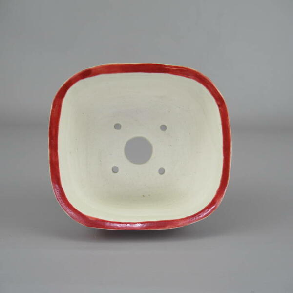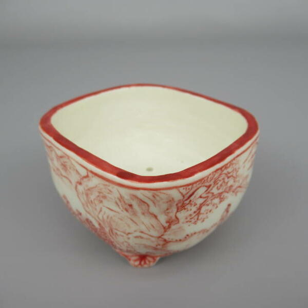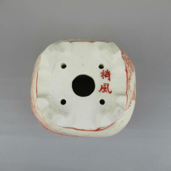 盆栽鉢 梢風 小鉢 長辺 約6.5cm 長方鉢 赤絵 山水 人物図 観賞用 現品 新品 品名梢風...