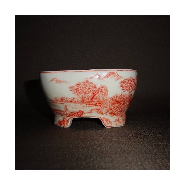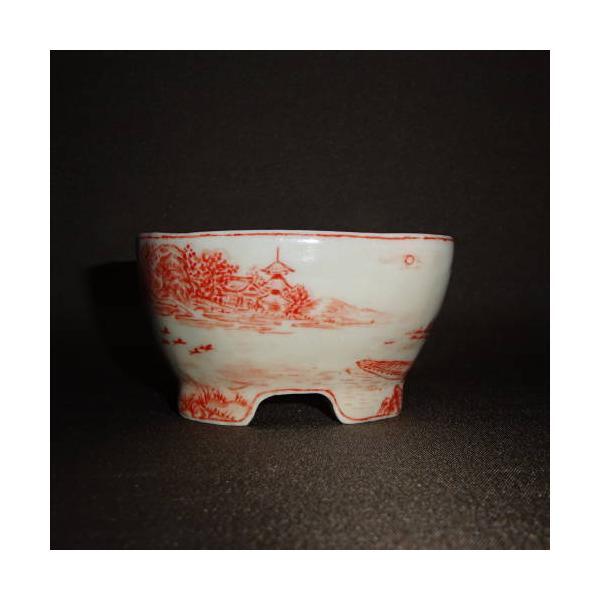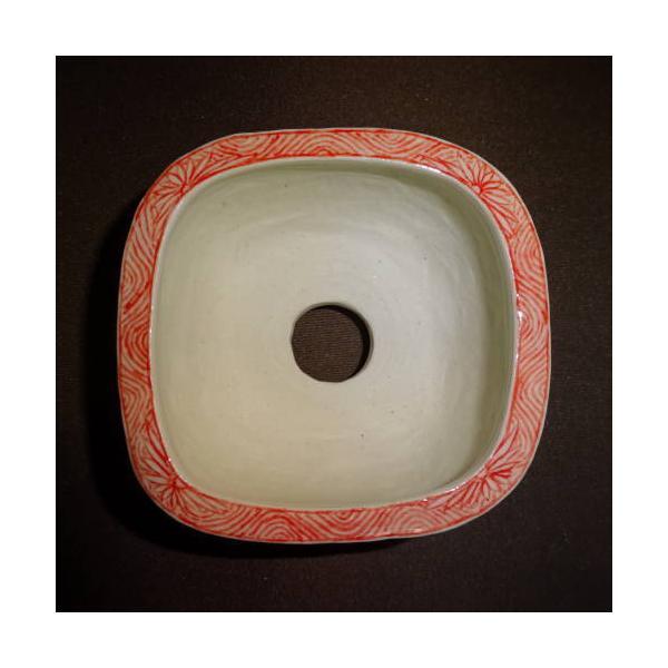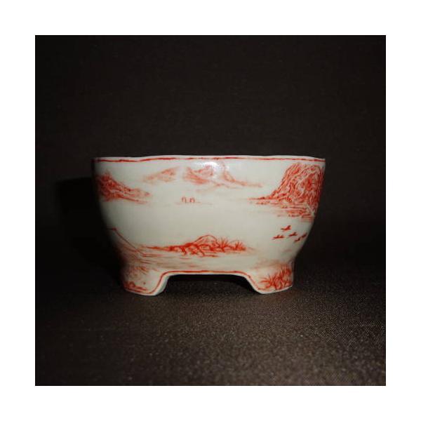 盆栽鉢 梢風 小鉢 長辺 約8.5cm 正方鉢 赤絵 山水図 観賞用 現品 新品 品名梢風...