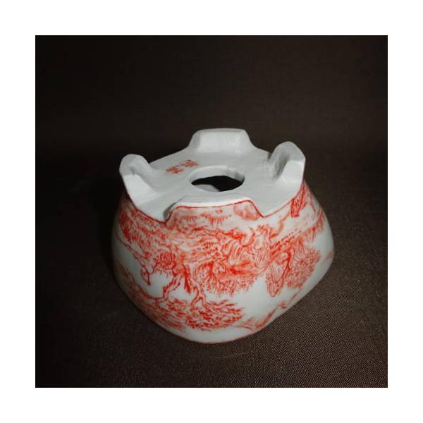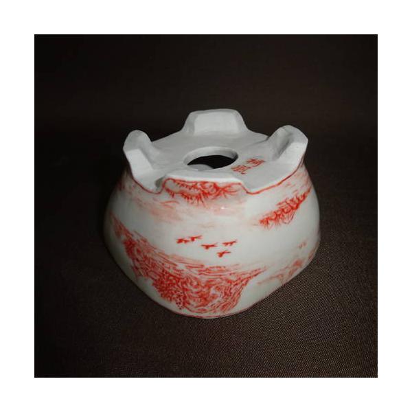 盆栽鉢 梢風 小鉢 長辺 約8.5cm 正方鉢 赤絵 山水図 観賞用 新品 x1198410644