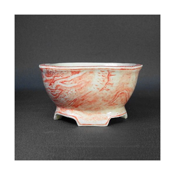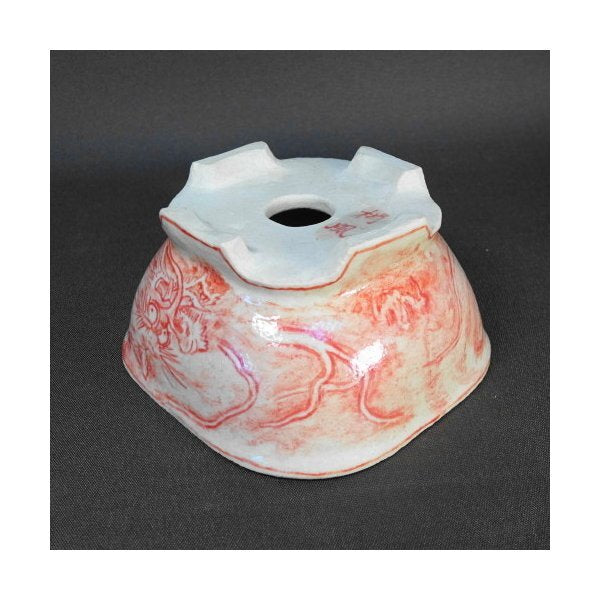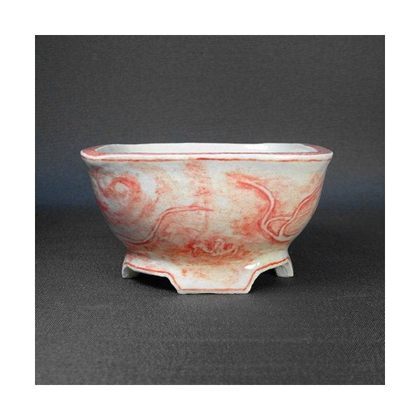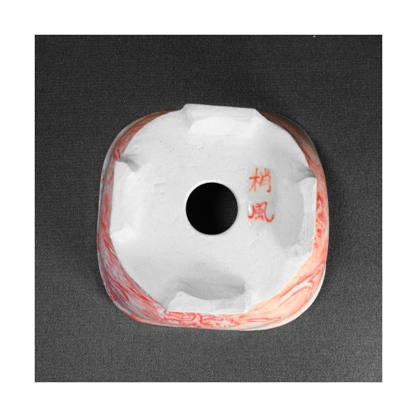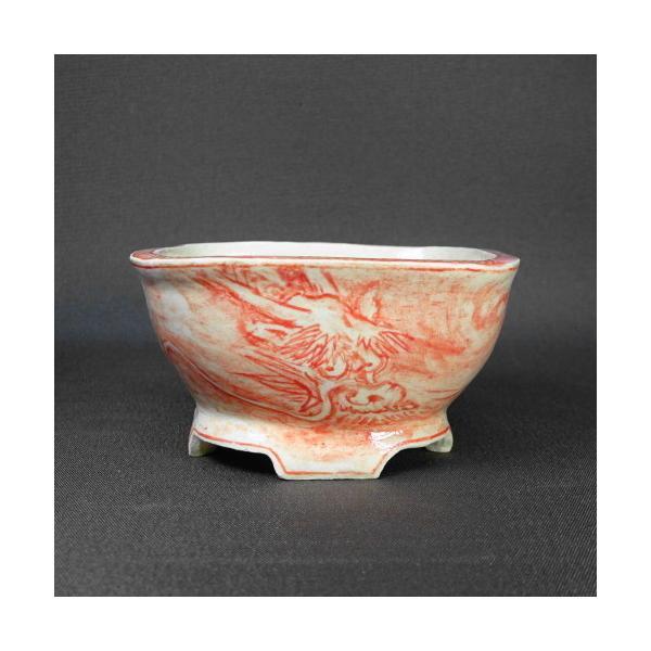 盆栽鉢 梢風 小鉢 長辺 約8.5cm 正方鉢 赤絵 龍図 竜 観賞用 現品 新品 品名梢風...