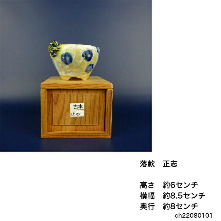 盆栽鉢 正志 古本正志 丸鉢 蛙付 釉薬 観賞用 現品 新品 素敵な鉢です。 古本正志 盆栽業を営む家に生まれ、18才から鉢作りを始める。 フクダ工房にて本格的に作陶の活動に入る。...