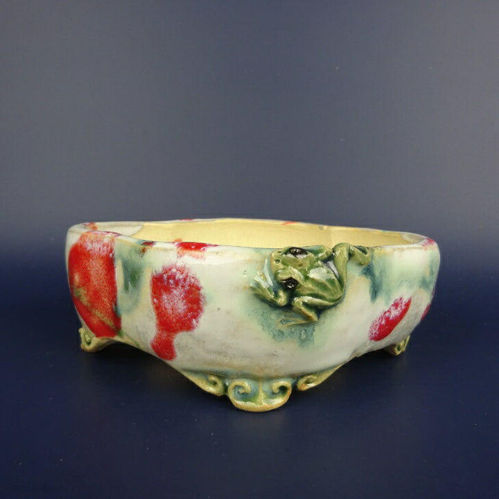 盆栽鉢 正志 古本正志 雲足 木瓜鉢 蛙付 釉薬 観賞用 新品 ラッピング j1198418653