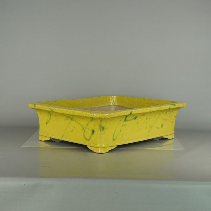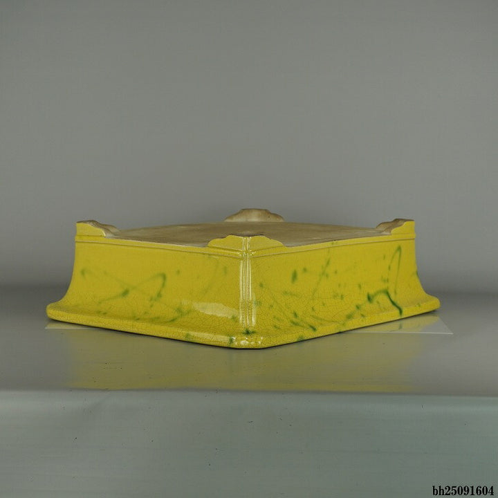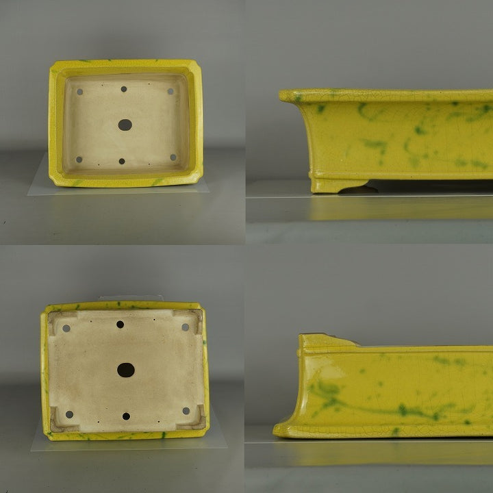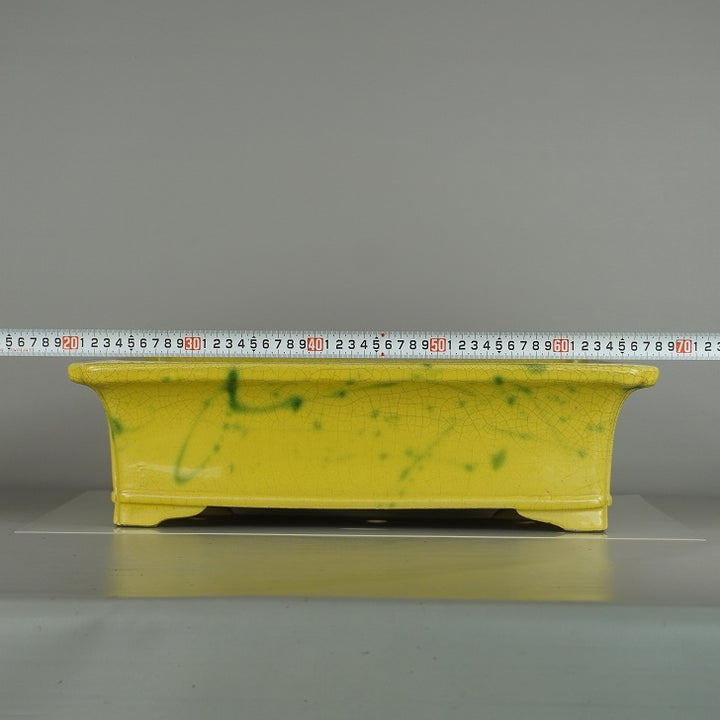 盆栽鉢 真山造 寺畑陶園 大型 長辺 約 48.2cm 長方鉢 外縁 隅入 下帯 貫入釉薬 p1203460038