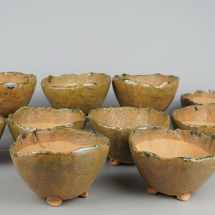 盆栽鉢 竹鳳 3点セット 小型 長辺 約11cm 丸鉢 釉薬 数量物 新品 f1198406894