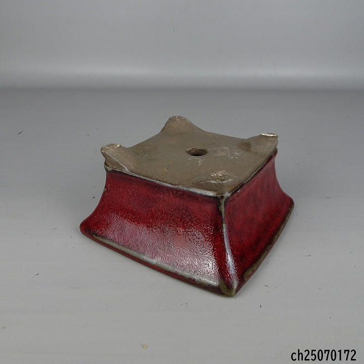 盆栽鉢 落款なし 小型 長辺 約 13.5cm 正方鉢 釉薬 中国鉢 新品 数量物 m1200262961
